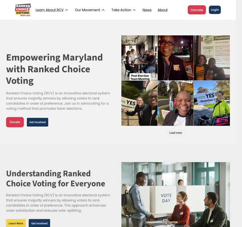 RCVMD.org is a civic engagement nonprofit dedicated to promoting ranked choice voting in Maryland. I built their WordPress platform to educate voters, organize supporters, and advocate for electoral reform.